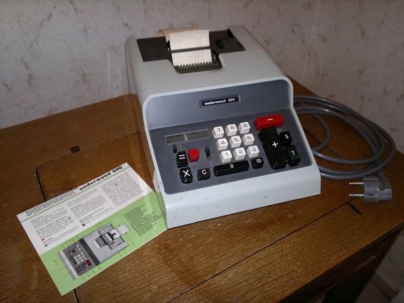 Rechenmaschine -Underwood 600- Liebhaberstück - Kurzgebrauchsanweisung wird mitgeliefert 10 Ziffern in der Eingabe - 11 Ziffern im Resultat Maße: (B x H x T) 38 cm x 20 cm x 15 cm Preis